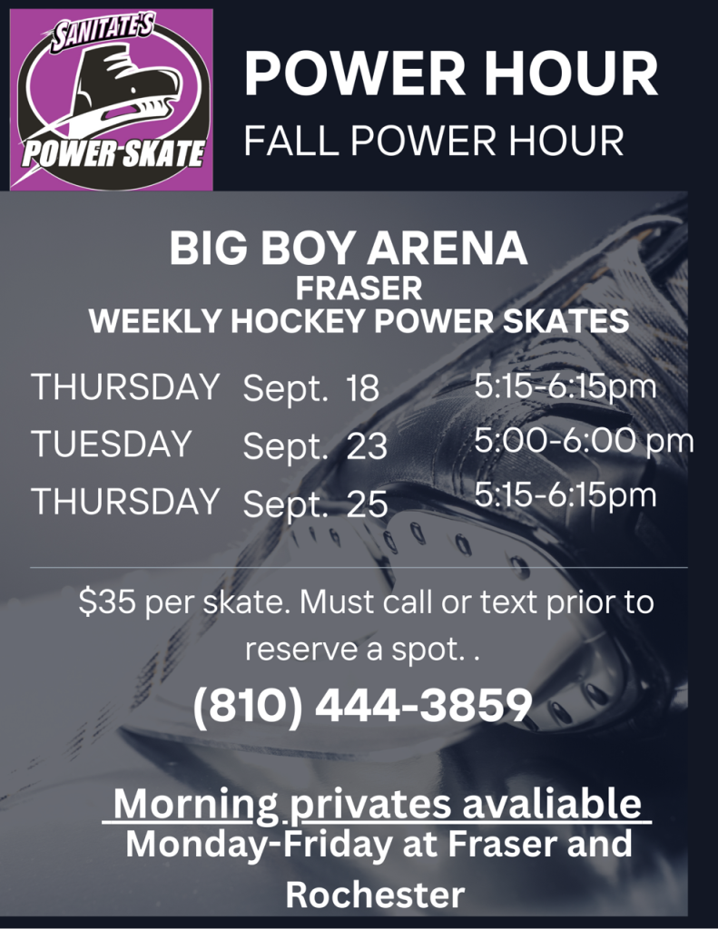 Power Skating is strong, fast, controlled skating. Hockey power skating teaches the player proper skating technique, including endurance, agility, rhythm, balance, and strength. As the hockey player begins to incorporate these skills into his or her game, performance is enhanced and injuries are minimized. The earlier these skills become a habitual part of the player’s practice and game, the more likely the player is to succeed in the sport of hockey. Sanitates Power Skate has successfully taught thousands of students the skills they need for peak performance.